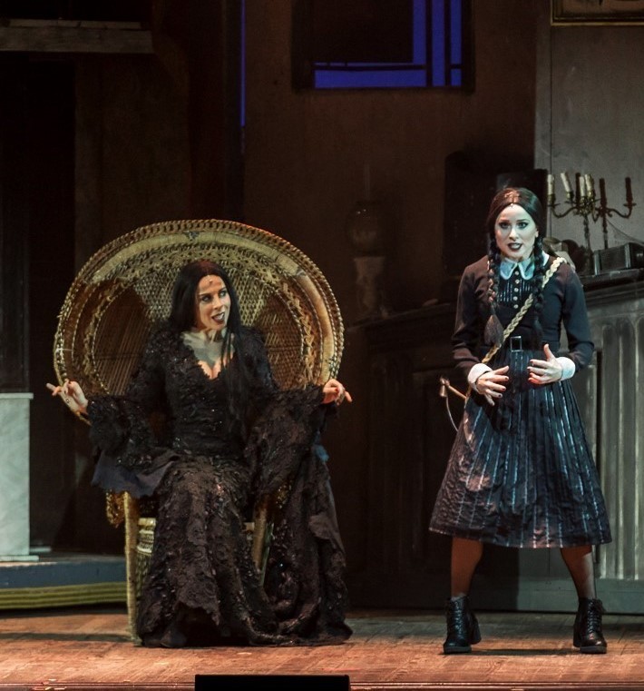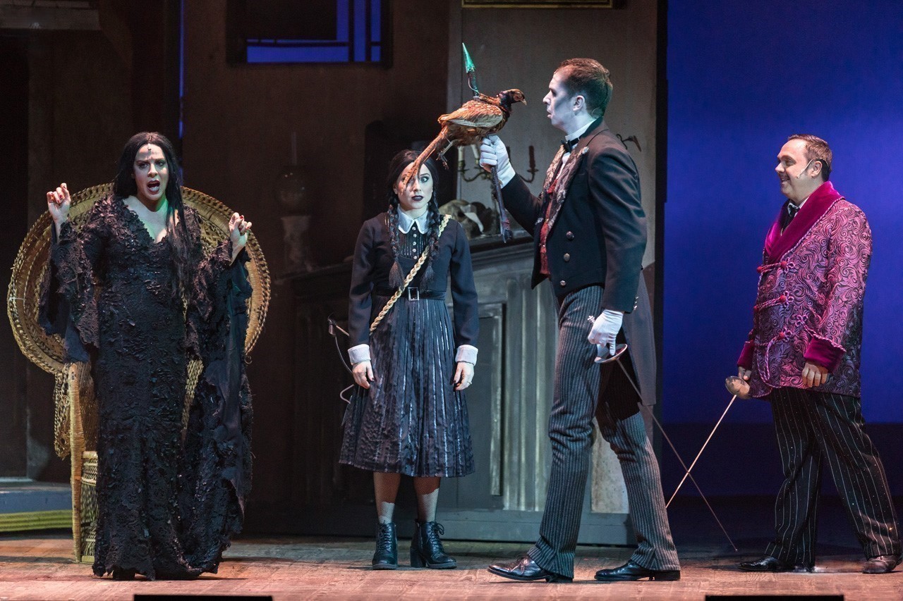 “Al fianco di Gomez, c’è lei, la seducente Morticia, che ha la bravura e la sensualità di Jacqueline Ferry. Smessi i panni di Consolazione in AGGIUNGI UN POSTO A TAVOLA la Ferry ritrova, a suo modo, un altro personaggio energico ed esuberante. Dominante quanto basta sul marito e capace di sprigionare acuti da far tremare pure le Erinni”